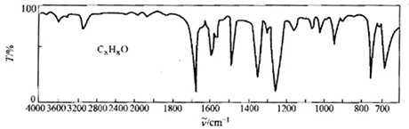 例3:分子式為C8H8O的未知物,沸點為220℃,由其紅外吸收光譜圖判斷其結構。